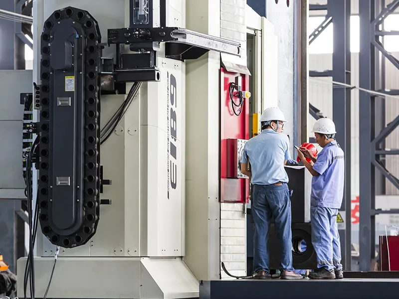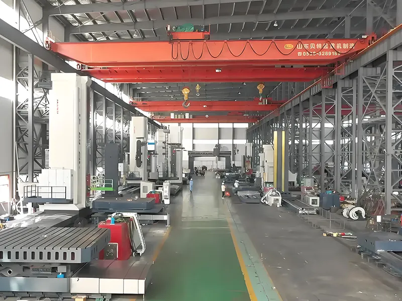 A oficina de montagem final recupera os componentes do armazém e monta as colunas e mesas giratórias de acordo com os planos de produção e os procedimentos operacionais do processo. Posteriormente, os cabeçotes de potência semiacabados, caixas de engrenagens, cabeçotes de fresagem e outros componentes da oficina de submontagem são instalados na estrutura principal da máquina-ferramenta.